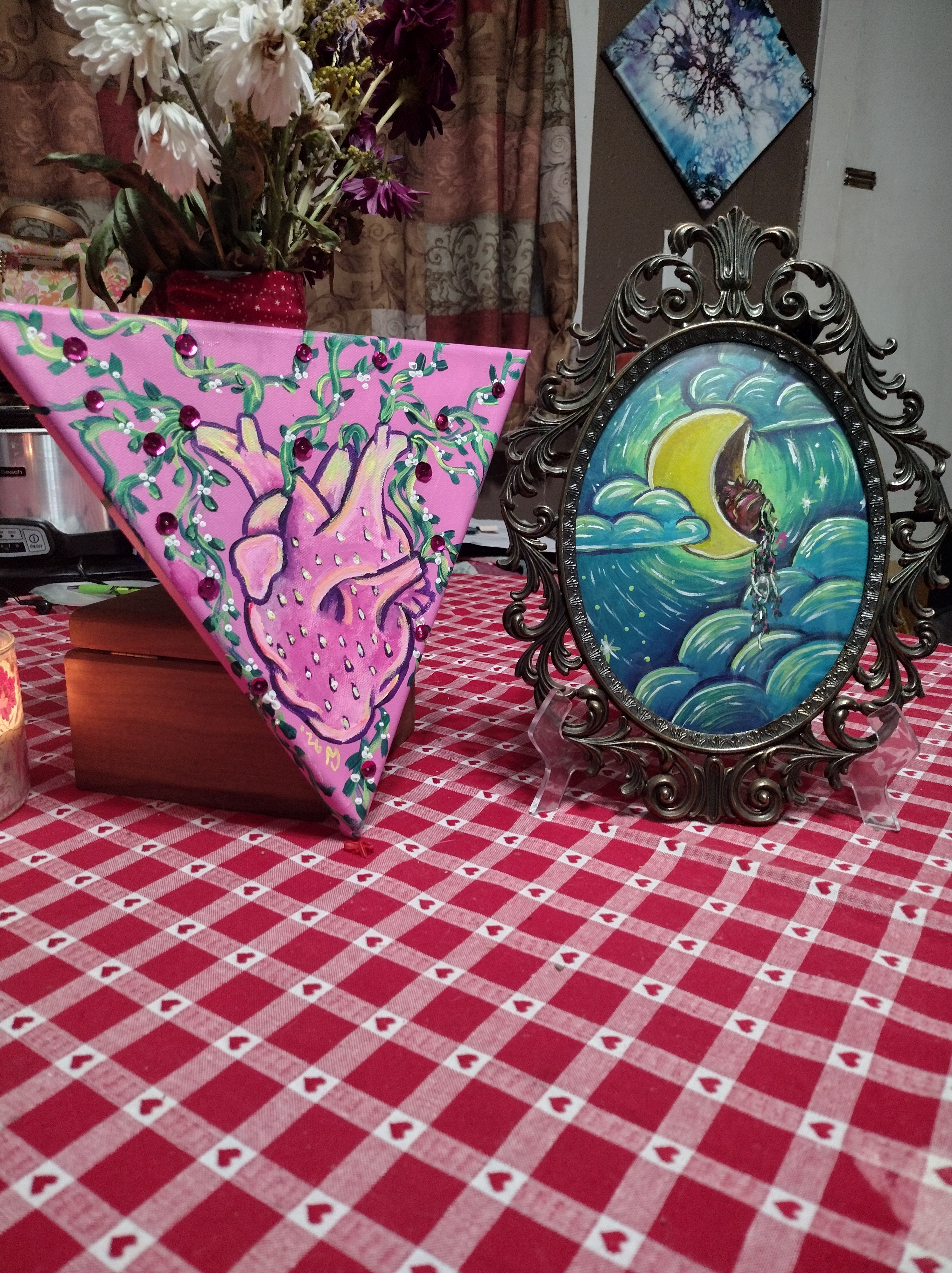 Hi! My name is Mackenzie Jane and I am the artist behind Whims and Wonders art. I am an artist and poet/writer living in the Driftless region of the Midwest United States. I use my art and writing to process and heal from childhood trauma, create connection with others, and explore thoughts and ideas I have while navigating life. I take inspiration from books, movies, music, my loved ones, and my dreams. I am a wife and mother, we have two teenagers, a cat and a dog! I love meeting new people and talking about my art and my inspiration. I’d love to have you along for the journey. ❤️